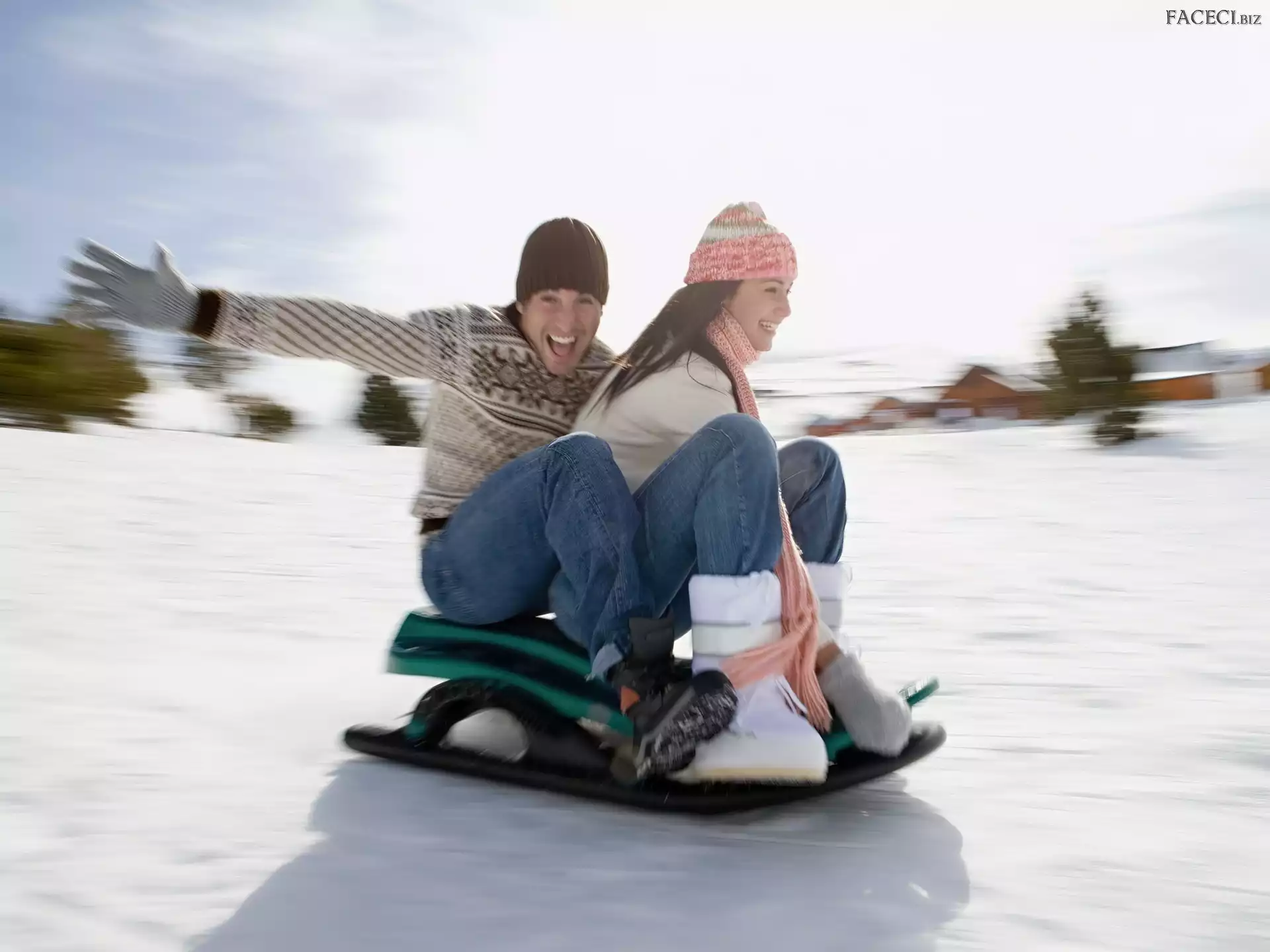 Jazda, Saneczki, Para, Zima, Śnieg - faceci.biz